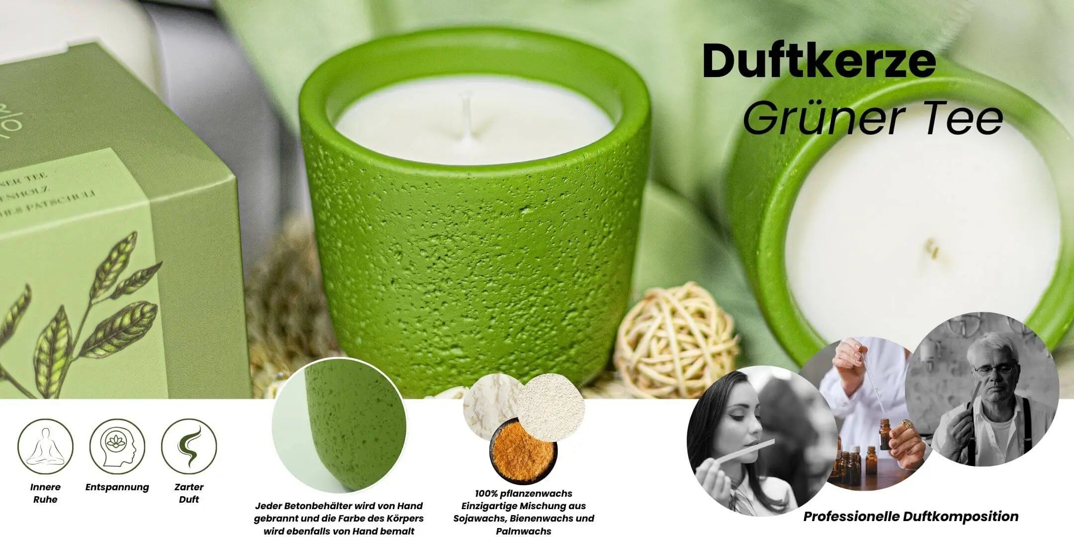 Betonkerze Auszeit mit grünem Tee