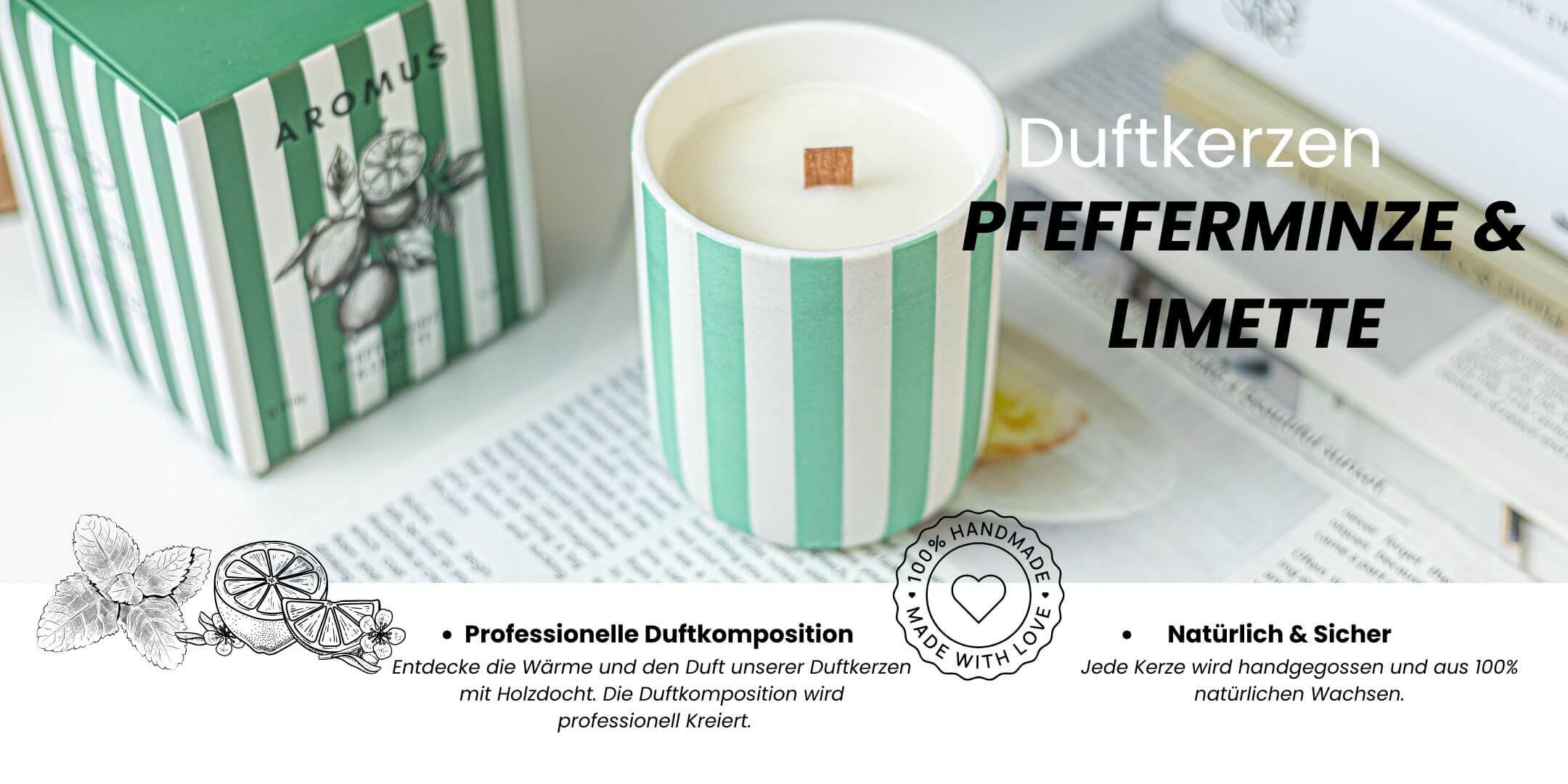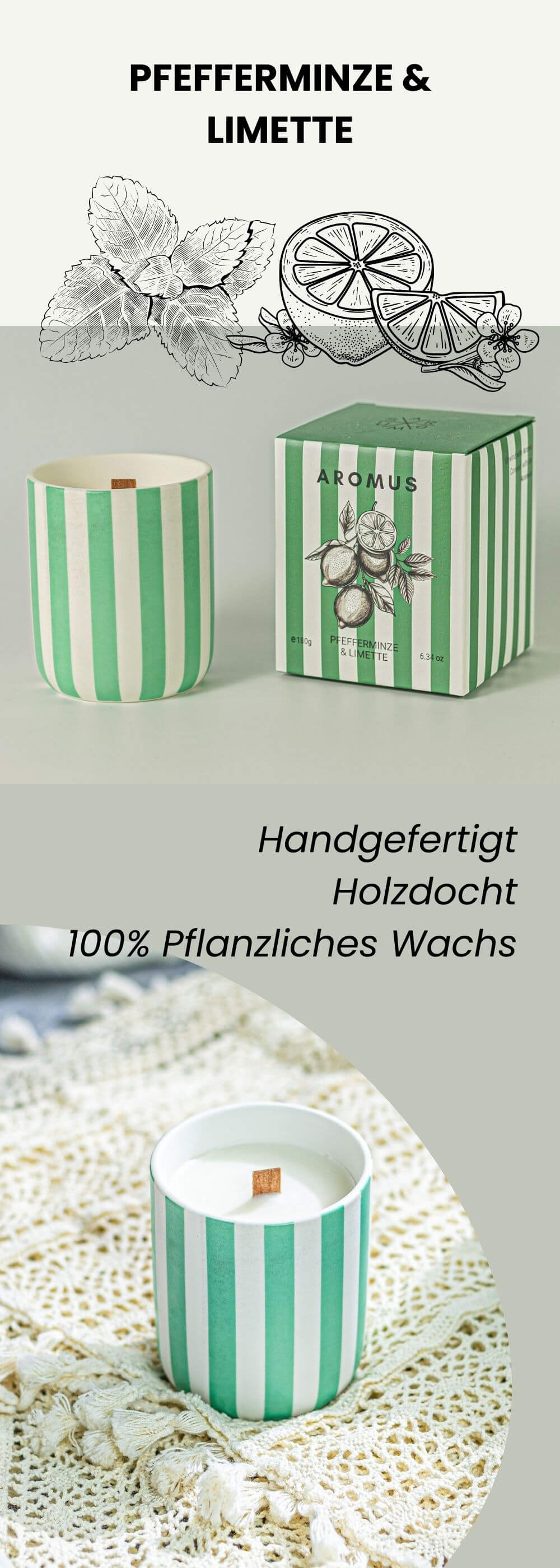 Duftkerze mit Holzdocht Pfefferminze & Limette