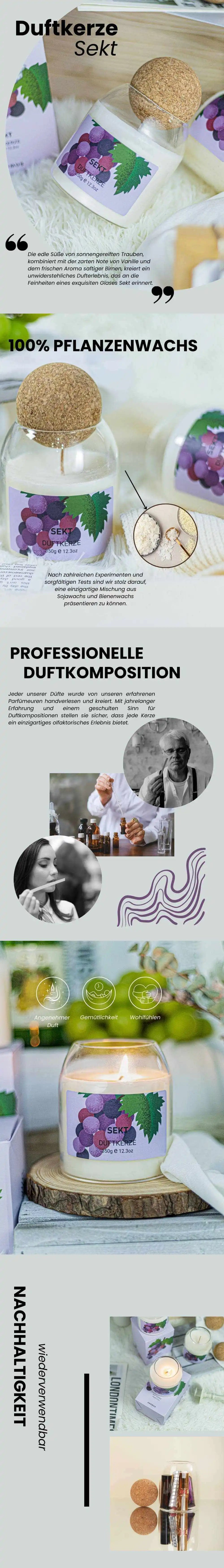 Die edle Süße von sonnengereiften Trauben, kombiniert mit der zarten Note von Vanille und dem frischen Aroma saftiger Birnen, kreiert ein unwiderstehliches Dufterlebnis, das an die Feinheiten eines exquisiten Glases Sekt erinnert.